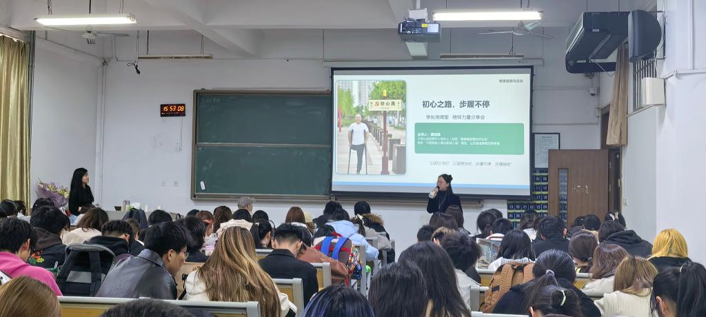 本次活动特邀我校优秀毕业生、全国最美基层高校毕业生龚钰犇回到母校,走进思政课堂,与现场140师生面对面分享成长经历、讲述青年奋斗故事活动现场,龚钰犇结合自身学习生活与工作实践,用朴实真挚的语言、鲜活生动的事例,分享了乐观进取、自强不息投身公益、甘于奉献的人生历程,与同学们亲切互动、答疑解惑,引发在场师生强烈共鸣。大家在真诚热烈的氛围中,近距离感悟榜样精神、汲取奋进力量。